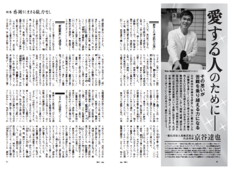 私、京谷の愛読書である月刊誌「致知」に、掲載いただきました。