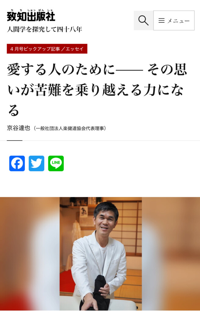 #京谷達也#楽健道#脳出血#左片麻痺#リハビリ#療養#一家に一人整体師#医療#致知出版#致知#感謝#愛