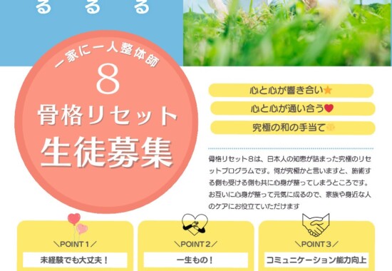 家庭向け手当て講座『骨格リセット8教室』『横隔膜リセット教室』